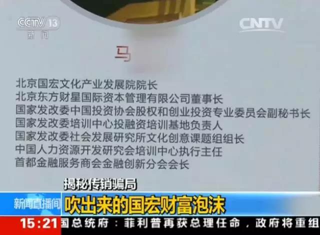 东方财星的高管非常善于自我包装。据央视报道,打开国宏基金和国宏众筹的宣传资料,门户网站、推介书、内部刊物一应俱全。宣传资料显示马某某本人拥有国宏文化产业发展院院长、东方财星公司董事长、首都金融服务商会分会会长等众多或实或虚的头衔。翻倍的投资回报,动辄上亿元的项目销售前景醒目地出现在宣传内容里,吸引眼球。马某某本人也频繁出现在各种仪式活动现场,为拉拢会员站台助威。