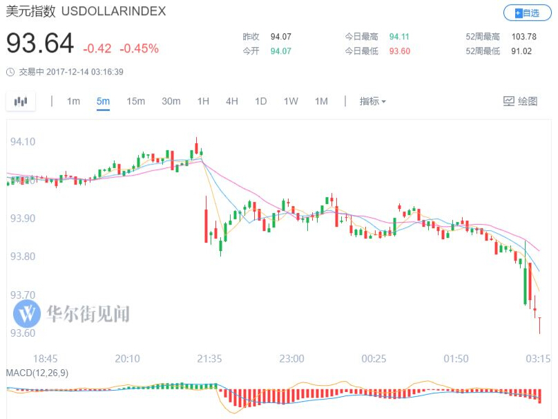 美联储12月决议发布后,黄金跳涨,美股三大指数涨幅扩大,美元下跌,美国国债收益率走低。美元指数跌约0.5%,刷新日低至93.60。