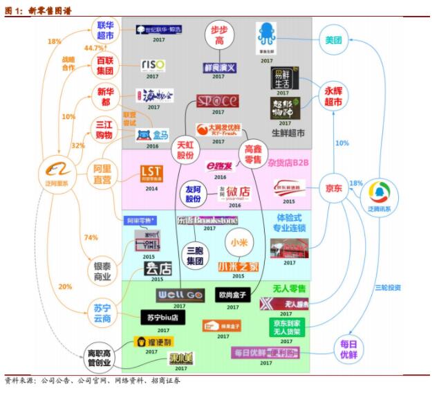 阿里、腾讯的新零售布局版图 图片来源:招商证券