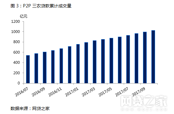 2016年,中央一号文件正式提出,“引导互联网金融、移动金融在农村规范发展”,意味着互联网金融+三农进入了发展的全新时期。网贷之家数据显示,目前包括翼龙贷、理财农场、希望金融等131家P2P平台涉及三农贷款业务。截止2017年10月,今P2P平台促成的三农贷款规模已经超过1000亿元,主要用于粮食、蔬菜、果类种植以及牲畜饲养。P2P平台正通过技术手段消除金融的地域歧视,甄别具备潜在偿还能力的借款农民,对缺乏信用记录和抵押品的农户进行授信和小额贷款支持,建立农户信用记录,将金融服务拓展到了传统金融机构所不能覆盖的地区。