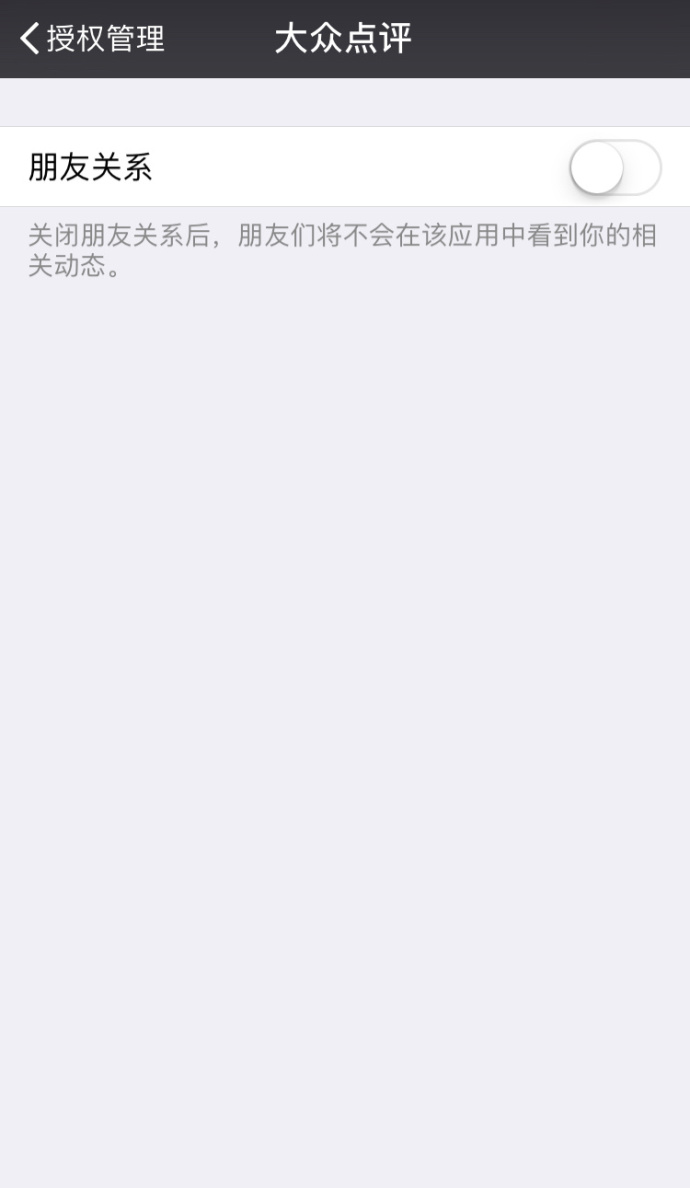 微信也为用户提供了关掉这一授权朋友的入口,只是非常隐蔽,需要再微信中【我】-【设置】-【隐私】-【授权管理】-【(应用名)】-【朋友关系】中关闭,一般人很难发现。