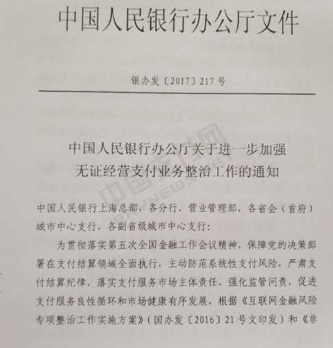网络整理 2021-03-22 18:58近日,央行下发了《关于进一步加强无证经营支付业务整治工作的通知》(银办发[2017]217号文),将加大对无证支付机构的整治和处罚力度。