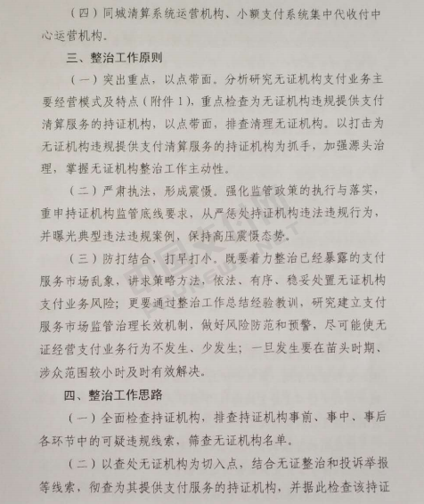 根据《通知》内容显示,将坚决切断无证机构的支付业务渠道,遏制支付服务市场乱象,整肃支付服务市场的违规行为。也将从严惩处违规为无证机构提供支付服务的市场主体,坚决整治严重干扰支付服务市场秩序的行为,规范支付业务活动,从根源上净化支付服务市场环境。此次整治行动将以持证机构为切入点,全面检查持证机构为无证机构提供支付清算服务的违规行为。
