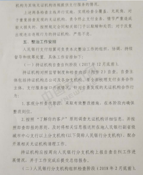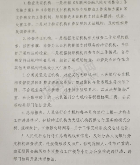 《通知》还明确规定,此次的检查对象除了非银行支付机构以为,还有银行业金融机构以及中国银联、农信银资金清算中心等等。在此次整治行动中,如发现有无证机构从事了支付业务,则将责令中止支付业务,情节严重造成较大损失的,将面临取缔和处罚。
