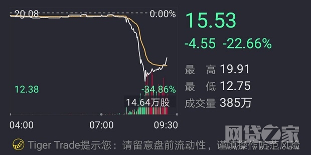 网络整理 2021-03-22 19:01网贷之家讯 周二(11月21日)美股开盘前,受此前报道称中国监管层紧急叫停互联网小贷牌照消息拖累,美股中国互金公司股价盘前时段集体暴跌,其中趣店最高跌超34%(最低价报12.38美元),较历史最高点35.45美元跌去逾60%,目前跌幅有所减少。信而富股价盘前跌17%,宜人贷、拍拍贷、和信贷以及融360等公司美股股价亦均在盘前大幅下跌。