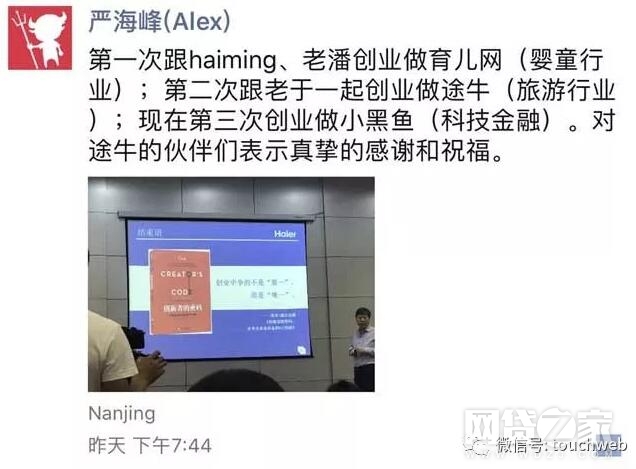 严海锋也在个人微信朋友圈证实这一消息,称“现在第三次创业做小黑鱼(科技金融)”。