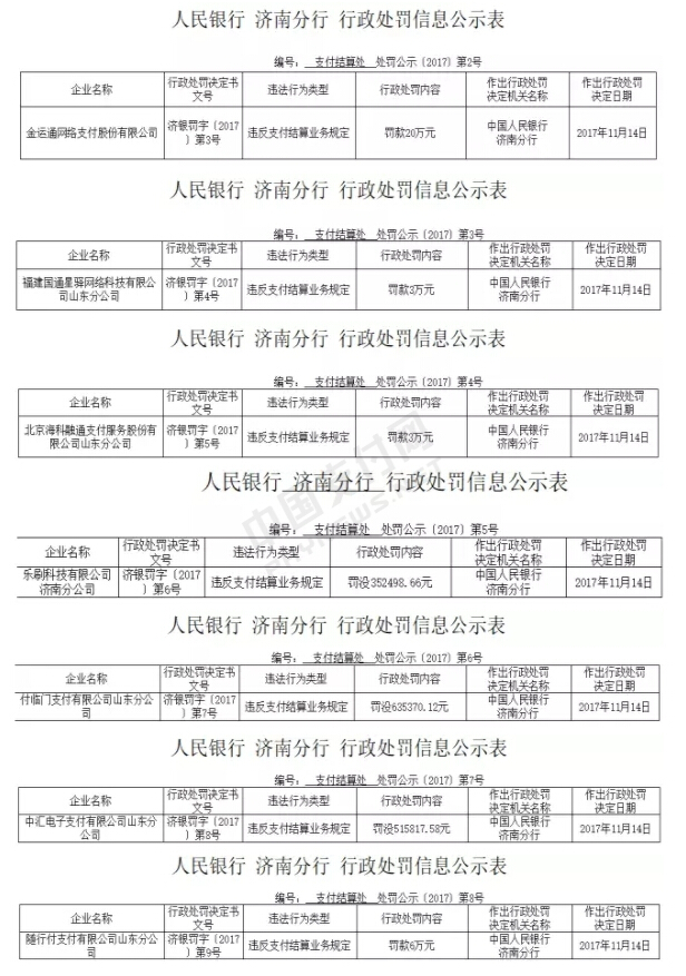 转载请标注:信息网——这7家支付公司吃了罚单 最高被罚63万(名单)