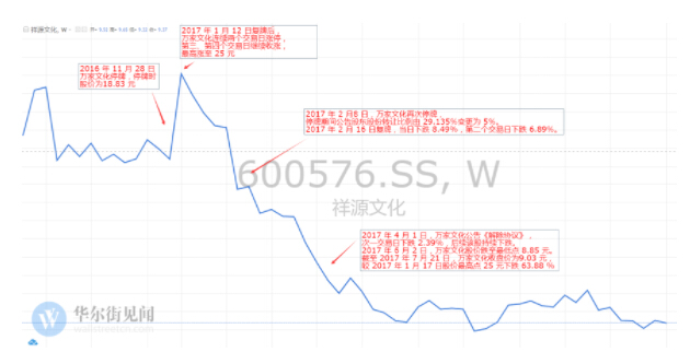 华尔街见闻曾用以下图表展示涉案期间万家文化的股价波动。