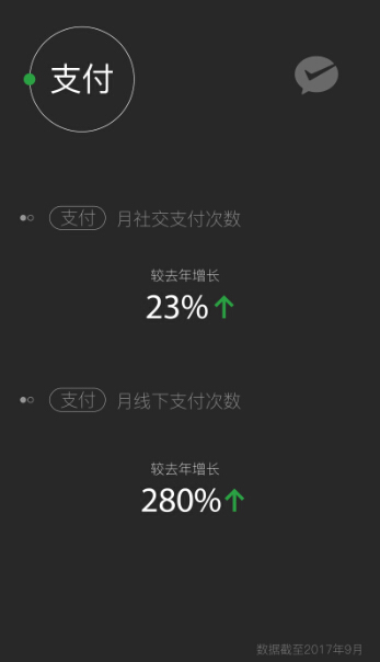 报告还显示,微信公众号方面,月活跃账号350万,同比增长14%;支付方面,月社交支付次数同比增长23%,月线下支付次数同比增长280%。