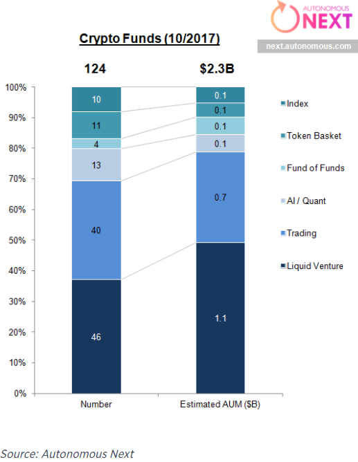 据CNBC报道,目前已有124家对冲基金专门盯住比特币和数字货币。金融研究公司AutonomousNext向CNBC提供了这一组数据,并表示目前这些投资数字货币的基金总资产已达到23亿美元之多。