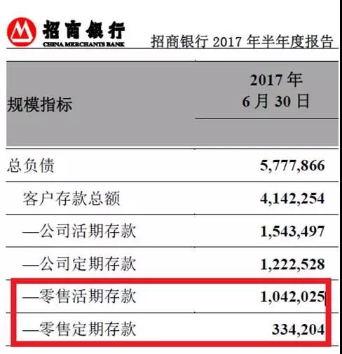 首先看看招行的数据,2017年6月30日的个人(零售)活期存款余额为10420亿元,环比2016年年底的9516亿元,增加了900多亿元。