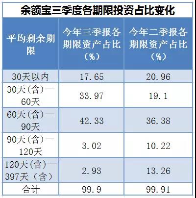 基金三季报数据还显示,报告期末余额宝投资组合平均剩余期限为60天,这一数据比今年中报数据再度减少12天。