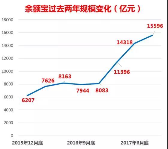 此外,四大行之一的中国银行2017年6月底的个人活期余额为1.8万亿元,马云的宝宝军团规模已超1.66万亿元,若是加上蚂蚁金服对接的“优化理财”资金,则会超过1.75万亿元,和中国银行的个人活期存款基本相当。