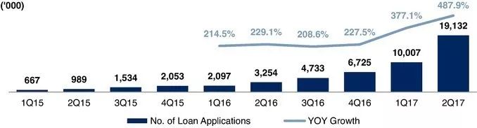 根据其招股说明书,净亏损从2015年的1.962亿元,减少7.2%至2016年的1.821亿元。2017年上半年,亏损4900万元。亏损的减少主要得益于推荐服务费收入的增长,2017年上半年融360的营收同比增长170%,至3.934亿元。
