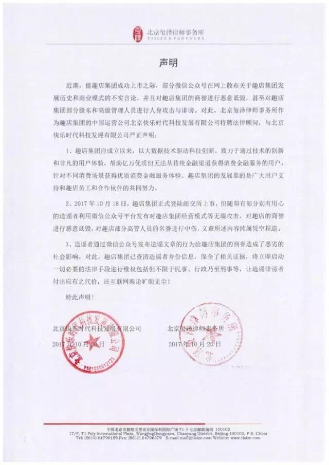 当然,如果这些公司足够有底气,或者足够低调,也并不是不可以,但显然事实并不是这样。比如,趣店就在舆论的争议中向我们展现了一次危机公关的负面范本。“PR应该灭火,而不是浇油”一位资深媒体精辟地总结到。