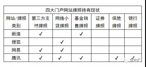 门户网站想要做消费金融就必须持牌化。纵观四大门户网站,腾讯从2013年开始至今斩获了银行、网络小贷、保险、基金及第三方支付5张金融牌照,成最大牌照赢家。搜狐对标蚂蚁金服,成立狐狸金服,仅在今年7月得到第一张也是唯一一张互联网小贷牌照。新浪仅有第三方支付牌照和基金消费牌照。网易的两张牌照则分别是第三方支付牌照、网络小贷牌照。