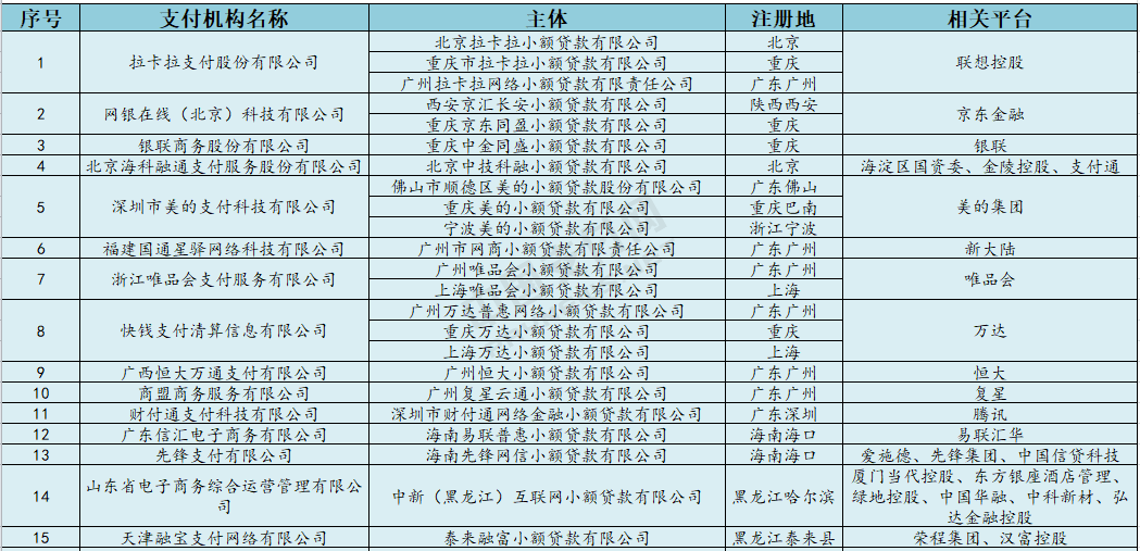 转载请标注:信息网——又添3家!共34家支付机构拿下小贷牌照(名单)
