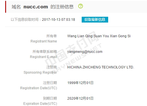 曝网联完成域名备案 将启用NUCC.com作为官网