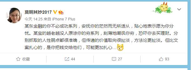 其实,文案以这种揭短和挖苦的方式搞理财宣传,无非是想告诉潜在投资者,你们穷是因为你们没有理财哦,快来买点基金吧。理财改变人生!