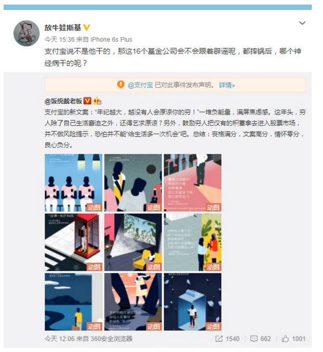 支付宝的文案已经逐步演化成业内的“事件”。出“事”儿之后,大家伙儿纷纷甩锅。