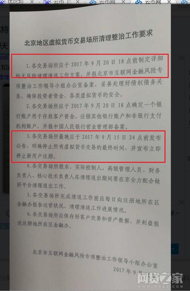 网传《北京地区虚拟货币交易场所清理整治工作要求》全文