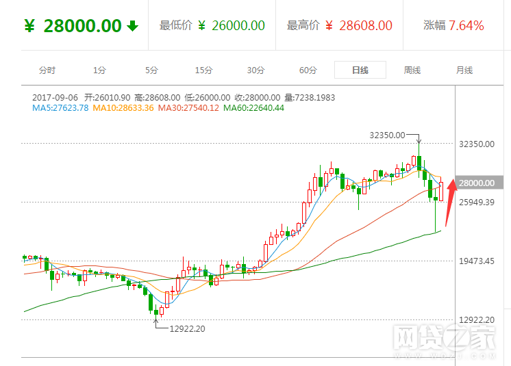 网络整理 2021-03-22 19:57网贷之家综合 在经过此前连续4日大跌过后,比特币价格迎来回升。9月6日早间,比特币人民币报价重新站上28000元关口,日高点触及28608元,日间涨幅一度达10%左右。