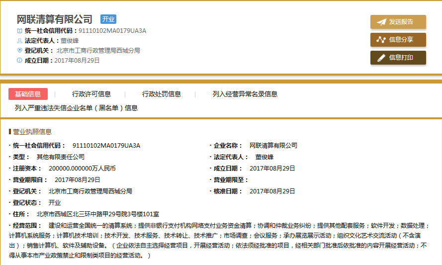 而这部分业务将很快迁移至网联平台。《国际金融报》记者发现,网联清算有限公司已于8月29日正式获得工商核准,注册资本20亿元。