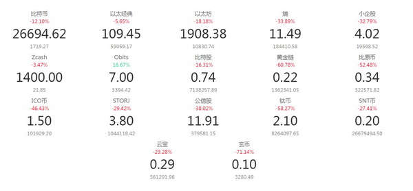 央行等七部门发布《关于防范代币发行融资风险的公告》后,包括比特币、以太坊在内的所有数字货币都出现了大跌。