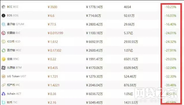 网贷之家注意到,在央行15点发布“公告”之后,以比特币为首的数字货币均有不同程度的下跌,有些数字货币的跌幅甚至超过了40%。