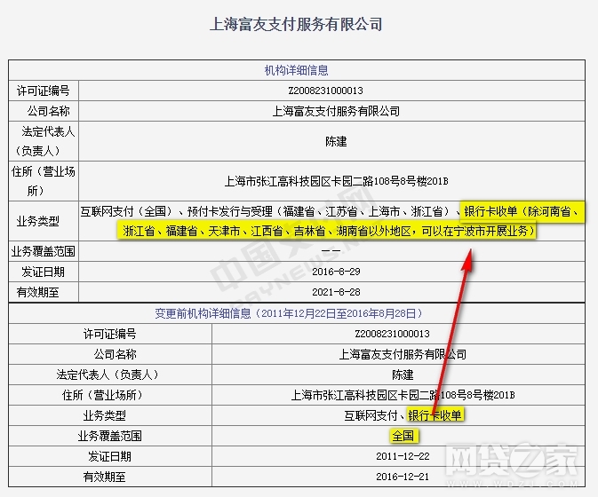 也因为此,原来是全国范围的收单业务受到了限制,在合并了富友金融之后,富友支付承接了其福建、江苏、上海、浙江四个省市的预付卡业务许可。
