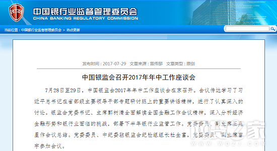 会议强调,党的十九大将于下半年召开,做好银行业监管工作、确保银行业稳健运行意义重大。银监会系统要按照全国金融工作会议要求,坚决把思想和行动统一到习近平总书记重要讲话精神上来,统一到党中央对金融形势的分析判断和对金融工作的决策部署上来,全力以赴做好下半年重点工作。