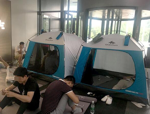 网络整理 2021-03-22 20:37此前躺在乐视大厦前讨债的乐视供应商,已经升级了装备,在瑜伽垫上面搭起了帐篷。