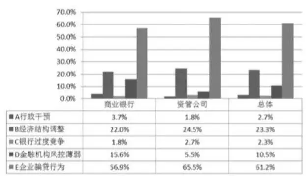 调查统计数据显示,61.2%的受访者认为企业骗贷行为是本轮不良资产迅速增长的主要原因。这一判断与2016年调查问卷结果差异较大,彼时83.2%的受访者认为经济结构调整是造成不良资产规模快速增加的主要原因,只有1%的受访者认为企业骗贷行为是主要原因。