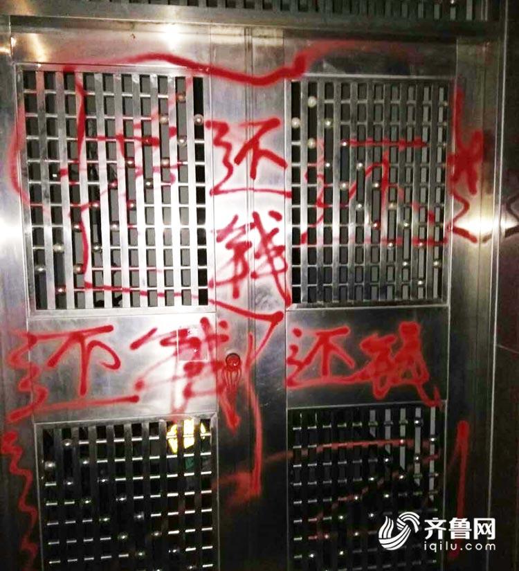 当天晚上没堵到人,催收团伙只好采取另一种手段。当晚凌晨3点,两名催收人拿着喷漆和胶水来到债务人家门口,男子在债务人车库大门上,用红色喷漆写上了还钱、债务人姓名、还有骂人的字样。另一名男子用胶水堵住了大门门锁,并在大门上也喷了漆。不到几分钟,债务人家大门、车库都喷满了很显眼的字样。