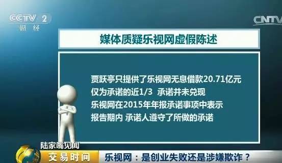 贾跃亭创业失败?央视质疑:乐视网涉嫌欺诈
