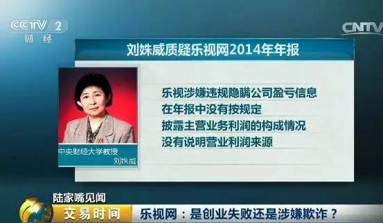 紧接着2015年6月底,曾经揭露蓝田股份造假的中央财经大学教授刘姝威,也质疑乐视涉嫌违规隐瞒公司盈亏信息,在年报中没有按规定披露主营业务利润的构成情况,没有说明营业利润来源。