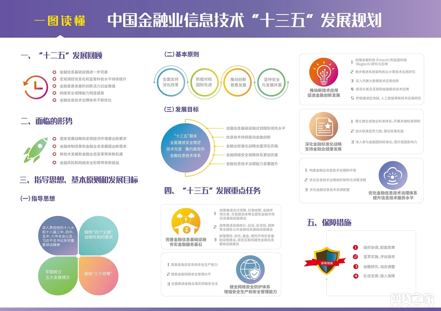 《规划》确立了“十三五”期间金融业信息技术工作的发展目标,主要包括:金融信息基础设施达到国际领先水平、信息技术持续驱动金融创新、金融业标准化战略全面深化实施、金融网络安全保障体系更加完善、金融信息技术治理能力显著提升。