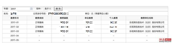 另一张查询2017年个人公积金缴纳记录的截图则显示,只有2017年1月、2月和3月显示“正常缴纳”,缴纳单位显示乐视网(300104.SZ)的全称,而4月和5月则无缴纳记录,“可我们四月份的工资里面已经扣除了五险一金个人缴纳部分”,上述员工表示。