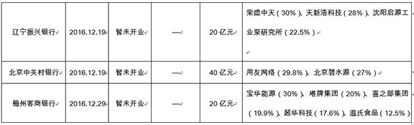 除此之外,2016年12月29日获证监会批筹的广州梅州客商银行也即将开业。其第一大股东广东宝丽华新能源股份有限公司(宝新能源,000690.SZ)方面向澎湃新闻透露:开业时间预计在6月。“领导人选已基本确定,具体信息等公告。”