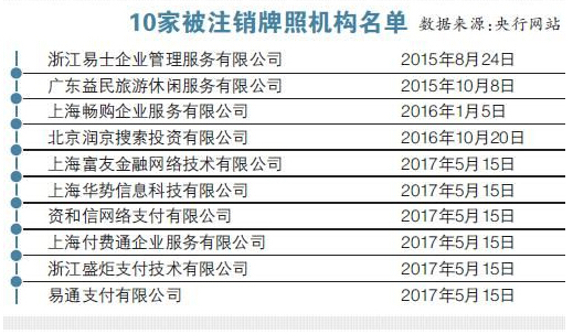 6家支付机构牌照被注销