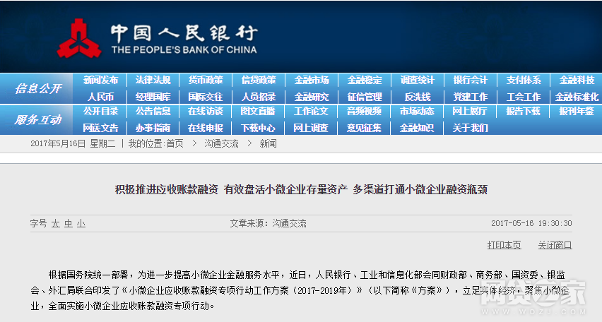 转载请标注:信息网——央行牵头开展小微企业应收账款融资专项行动