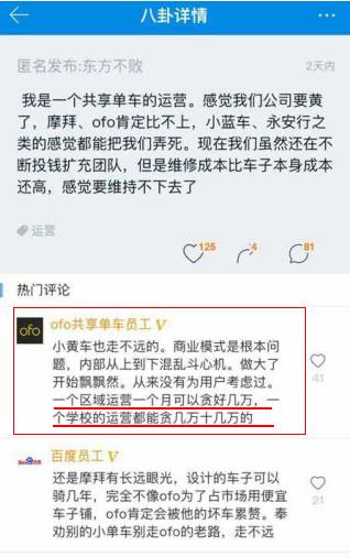 ▲ 爆料内部区域经理贪腐现象的ofo员工揭露,区域经理每月通过虚报修车师傅套取公司资金数万到数十万元不等,而ofo公司总部却不进行调查处理。