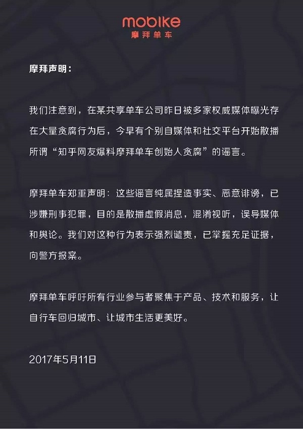 对于摩拜单车的上述声明,元璟资本合伙人、ofo投资人刘毅然向《国际金融报》记者表示,“我们支持公司的做法,公司高速成长总会有各种问题要跨越。但只靠自觉、情怀不够,要有完善的制度支撑。”