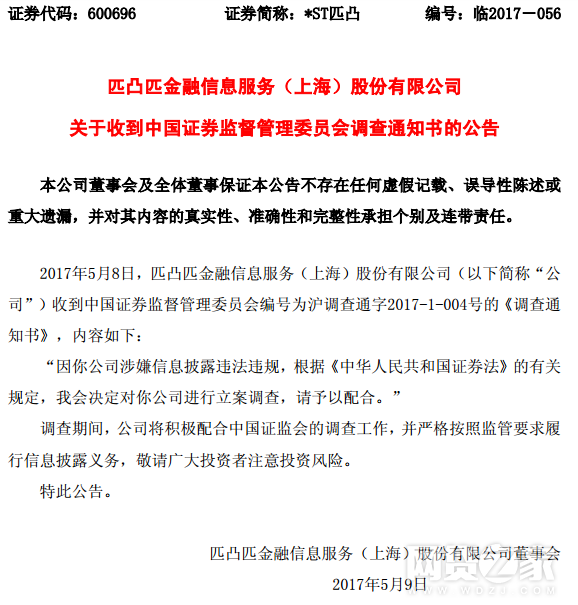 转载请标注:信息网——*ST匹凸信披违规遭证监会立案 股价全天跌停