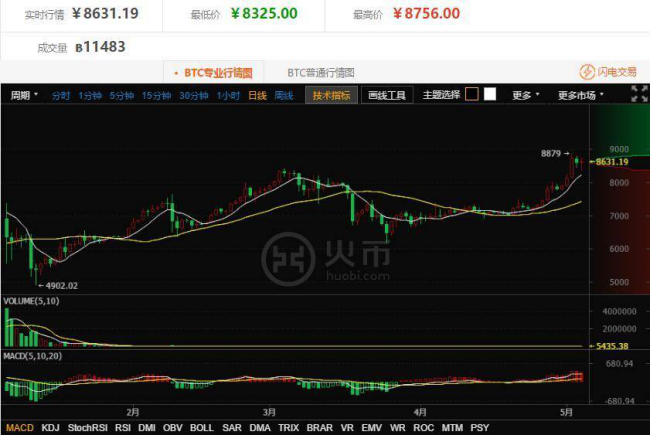 网络整理 2021-03-22 21:375月4日,根据安全可信赖的数字货币交易平台火币网比特币行情显示,截止10点48分,比特币当前价格8631.19元人民币。昨日早盘币价延续上涨趋势,往上攀涨,但在午盘之后陷入横向震荡格局。5月4日5时左右,最低触及8325元一线。