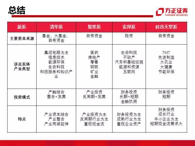 基金君今天看到方正证券老师写了一份研报,里面分析了我国的产业并购的几个资本派系,里面有:安邦系、硅谷天堂系、和君系、中植系、德隆系、复星系、华立系、紫光系、海航系等。值得一看。
