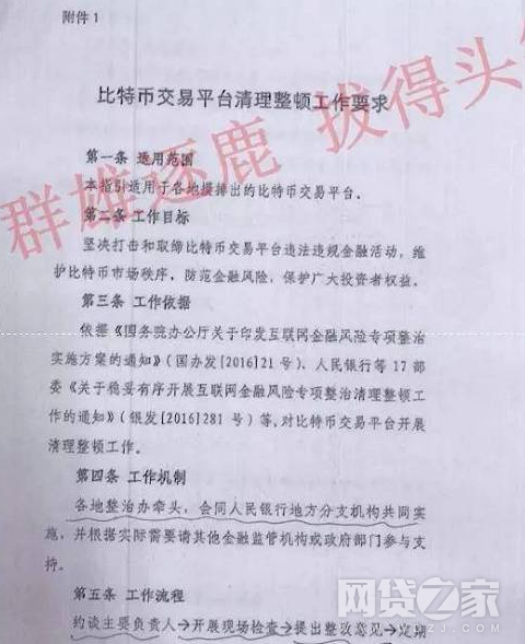 网传《比特币交易平台清理整顿工作要求》文件全文: