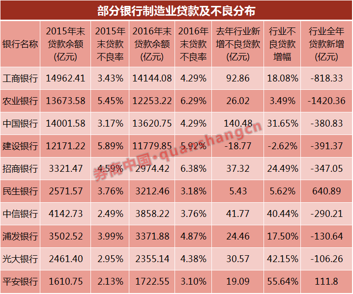 当然,这并非行业趋势,股份行制造业不良新增幅度仍在20%~50%之间,整体增幅虽较2015年有所下降,但风险继续暴露的态势没有改变。