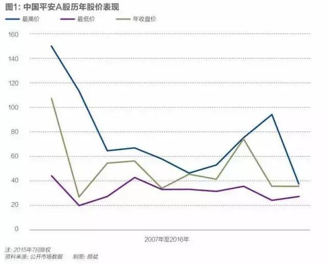 事实上,在平安A股上市十年间,其股价也曾有过名列百元股的辉煌时刻。2008年金融危机之后,受富通投资失利和增发方案受阻等因素影响,平安一改激进路线,代之以稳健风格,其股价表现亦趋于平淡。