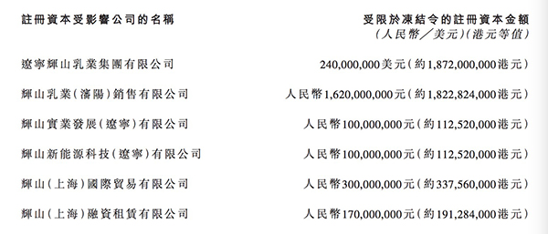 在最新公告中,辉山乳业表示,在公告日(4月10日)下午5时整,公司注意到相关法院文件,据此歌斐资产已向上海法院申请冻结辉山乳业控股、辉山乳业(中国)有限公司、辽宁辉山乳业集团(沈阳)有限公司、杨凯先生及其妻子的资产。原则上,上海法院已经裁定冻结上述受制于该申请的各方的现金资产或其他等值资产,金额共计人民币5.46亿元。根据中华人民共和国法律,有关裁定须伴随指定扣押令方会生效。